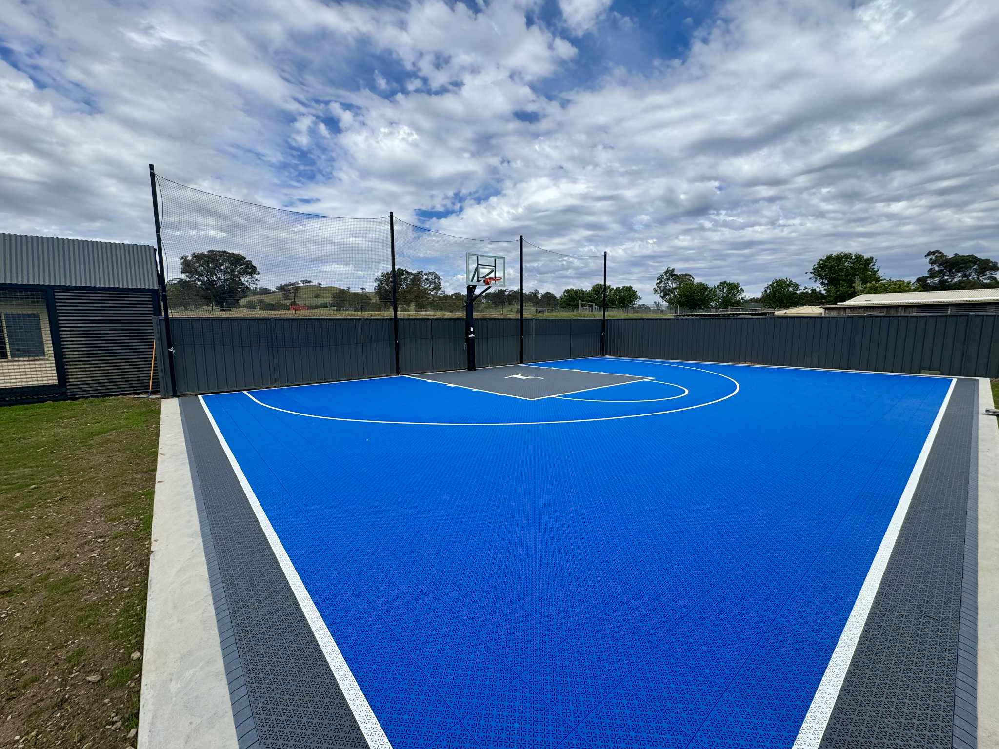From first glance, the Bonnie Doon court stands out for its clean colour palette and professional finish. The combination of blue and dark grey creates a striking contrast that enhances both the look and feel of the court.