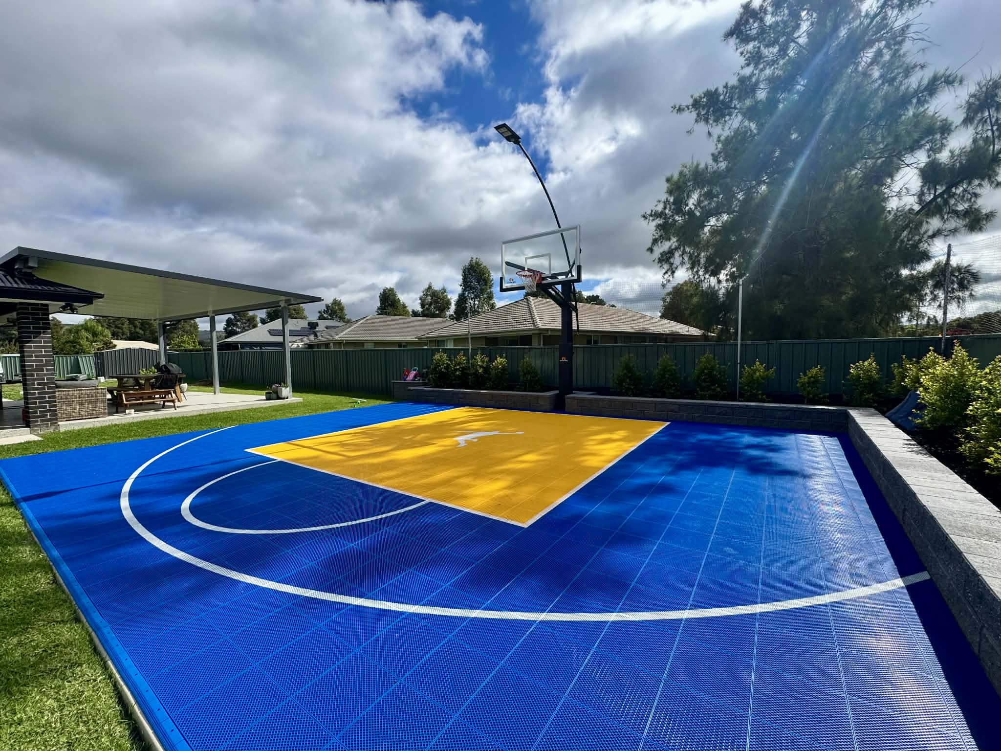 Set within a beautifully finished backyard, this installation is more than just a court. It becomes a true lifestyle feature, creating a dedicated space for basketball, activity and entertainment right at home.