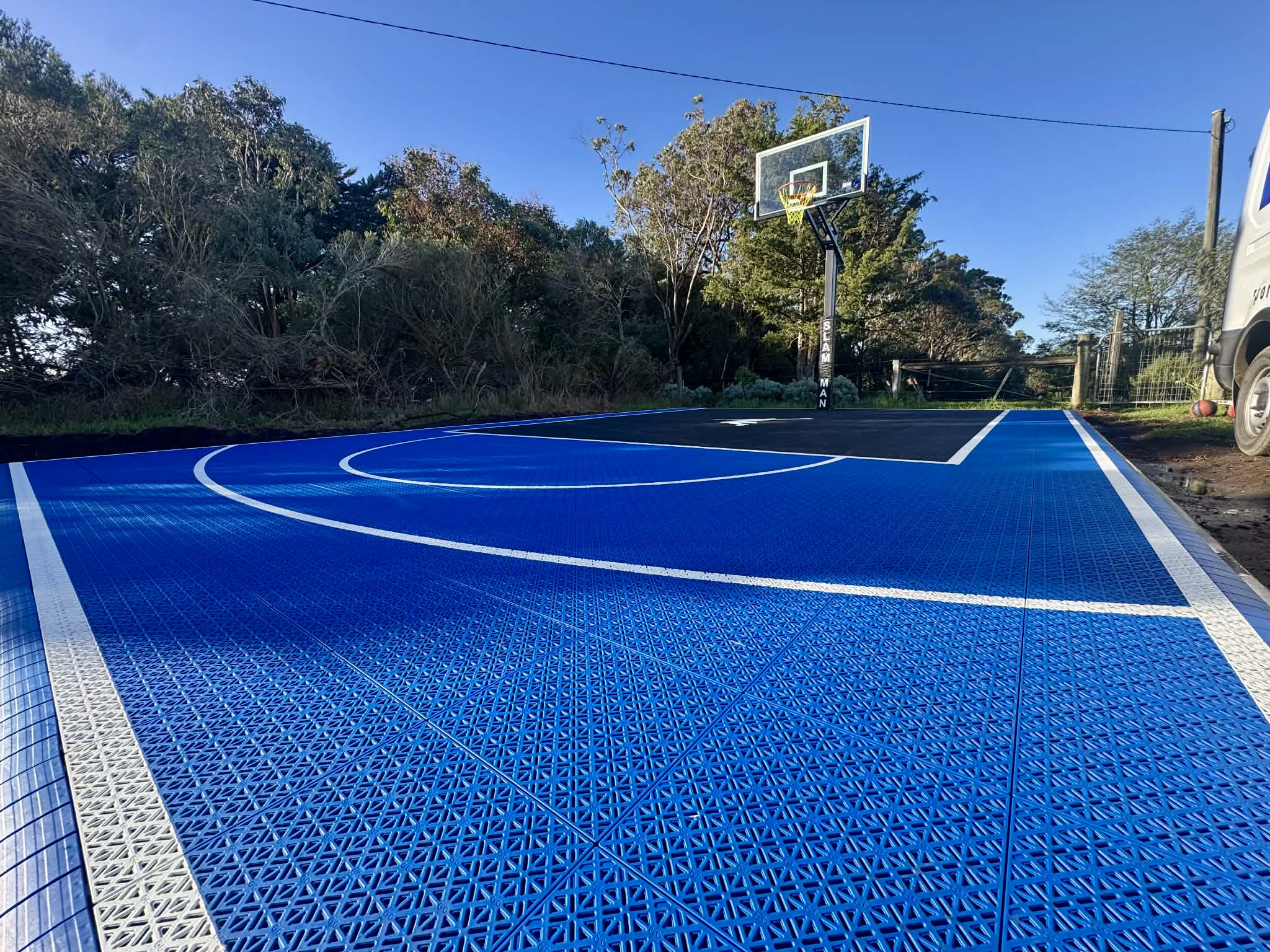 The design features a bold black key with a bright blue outer, finished with a full regulation key and 3 point line for a clean, professional look. The colour contrast gives the court serious visual impact while also creating clear definition for game play and shooting practice.
